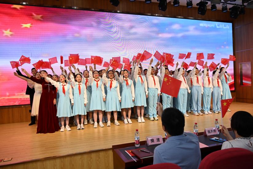 “祖國啊,祖國,我深深地愛著我的祖國!”,二中廣雅中學的師生帶來的沉浸式歌舞朗誦《歌唱祖國》,將活動推向高潮,他們用少年之聲與歷史回響隔空對話,點燃全場愛國熱情。