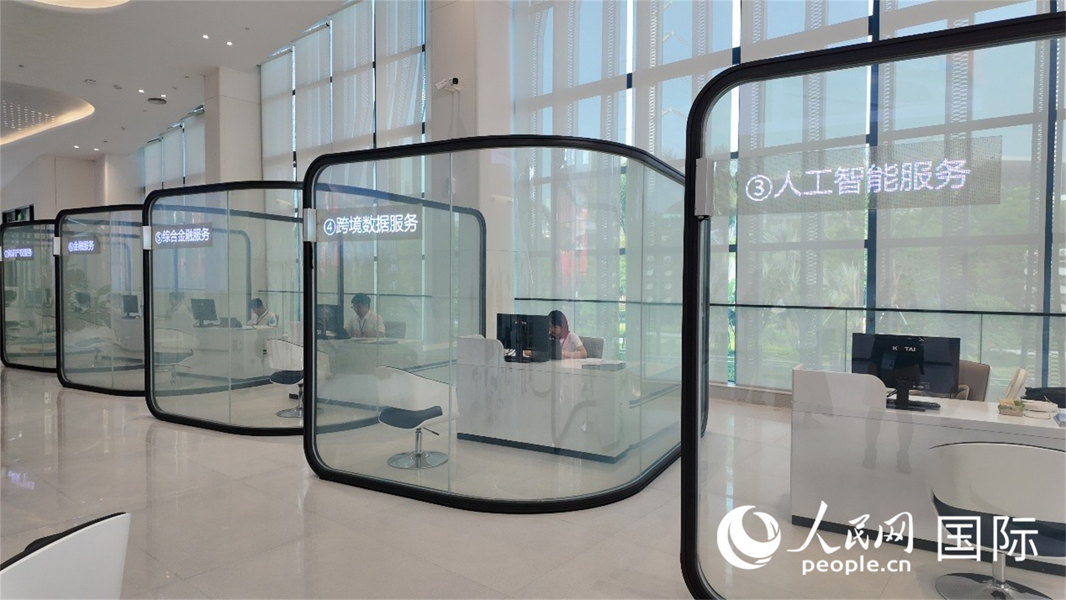 南A中心服務(wù)大廳設(shè)10個智慧窗口,打造“一站式”國際人工智能產(chǎn)業(yè)服務(wù)平臺。人民網(wǎng) 張醴泉攝