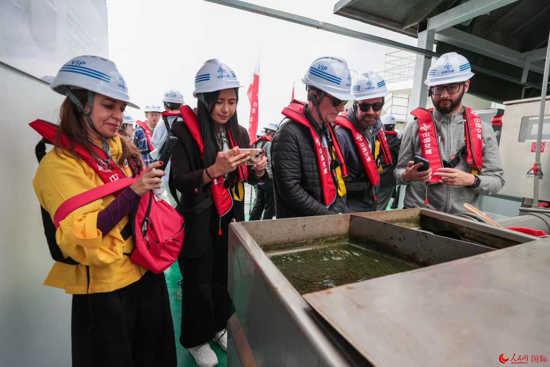 2025“一帶一路”媒體合作論壇中外媒體聯(lián)合采訪團(tuán)在中交集團(tuán)為滇池量身定制的“藻水共治”一體化平臺(tái)采訪調(diào)研。人民網(wǎng)記者 張武軍攝
