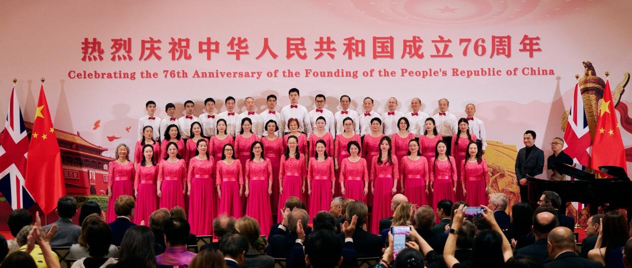 使館合唱團以及倫敦華人愛樂合唱團聯(lián)袂獻曲迎國慶。楊浩鵬攝