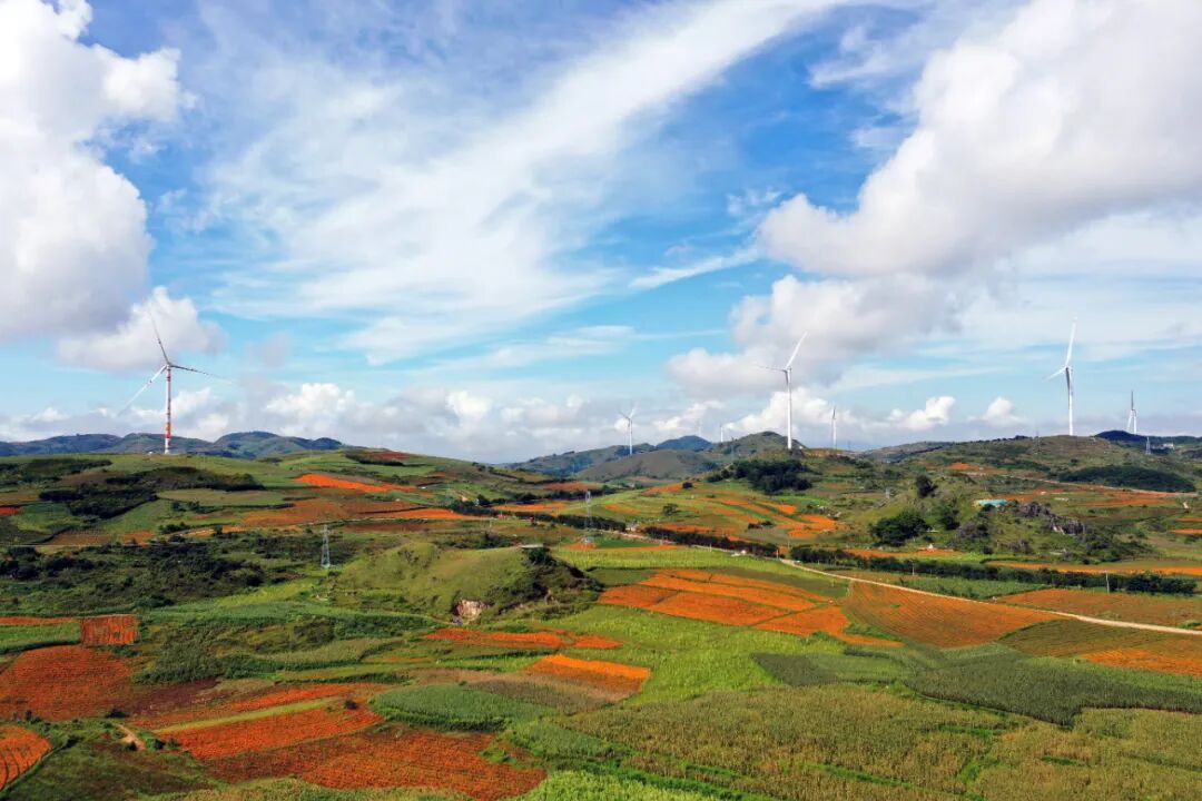 高原特色文旅與能源產(chǎn)業(yè)相互促進(jìn),為縣域經(jīng)濟(jì)帶來新鮮活力。該基地建設(shè)堅持“在開發(fā)中保護(hù)、在保護(hù)中開發(fā)”,將綠色發(fā)展理念貫穿全生命周期。在風(fēng)電場間隙地,種植耐陰中藥材、萬壽菊經(jīng)濟(jì)作物;在風(fēng)機機位上,繪有壯族、苗族、彝族等民族圖案;建設(shè)觀景平臺、徒步棧道等設(shè)施,方便游人往來、觀景?!安世L風(fēng)機+高山草場+云海觀光”生態(tài)旅游線路上,扇葉、花海相映成趣,“上風(fēng)下農(nóng)”相得益彰,帶動周邊民宿、餐飲收入增長。創(chuàng)新“新能源+”融合發(fā)展模式,一體化推進(jìn)生態(tài)修復(fù)、立體經(jīng)濟(jì)與清潔能源協(xié)同發(fā)展,繪就農(nóng)、工、旅“良好互動”的美麗畫卷。