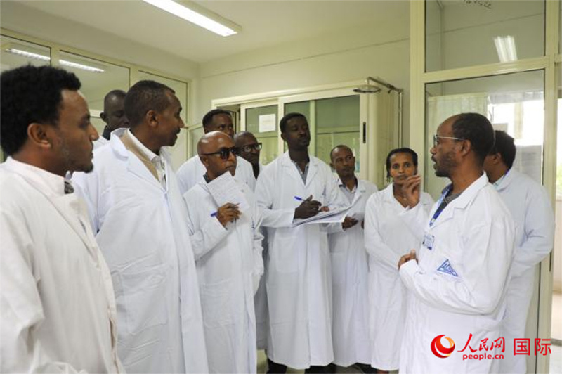 當(dāng)記者在檢測中心采訪時,正好碰上了一次項目培訓(xùn),培訓(xùn)人員來自埃塞俄比亞國內(nèi)各省和地區(qū)。現(xiàn)場培訓(xùn)氛圍非常好,講師和學(xué)員之間充滿了問答和高度參與的互動,學(xué)員們把講師圍了個里三層外三層,積極地提問。