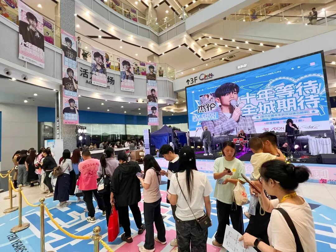 9月26日—28日,周杰倫主題音樂(lè)會(huì)嘉年華活動(dòng)在永旺夢(mèng)樂(lè)城武漢經(jīng)開(kāi)購(gòu)物中心連續(xù)三天上演?!敖苊浴眰冋具M(jìn)專(zhuān)屬打卡框,與“杰倫”同框合影,參加粉絲互動(dòng)活動(dòng),領(lǐng)取應(yīng)援周邊,沉浸式體驗(yàn)“倫”式浪漫。永旺夢(mèng)樂(lè)城武漢經(jīng)開(kāi)購(gòu)物中心相關(guān)負(fù)責(zé)人告訴記者,9月27日,永旺夢(mèng)樂(lè)城接待市民近10萬(wàn)人,銷(xiāo)售額超800萬(wàn)元。