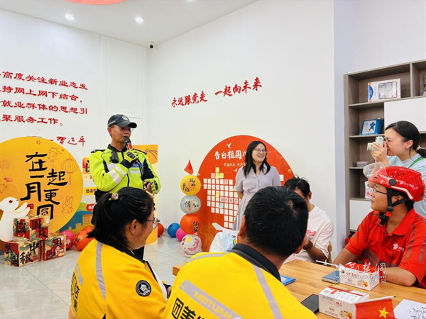 荊楚網(wǎng)(湖北日?qǐng)?bào)網(wǎng))訊(通訊員 劉蘭蘭)9月28日下午,武昌區(qū)黃鶴樓街道新就業(yè)群體服務(wù)驛站、黃鶴先“蜂”新時(shí)代文明實(shí)踐點(diǎn)內(nèi)暖意融融,一場(chǎng)以“月滿華誕 驛家同歡”為主題的中秋國(guó)慶雙節(jié)特別活動(dòng)在此開展?;顒?dòng)通過一系列精心設(shè)計(jì)的環(huán)節(jié),為快遞員、外賣騎手等新就業(yè)群體送上溫暖節(jié)日祝福,搭建互動(dòng)交流橋梁,切實(shí)提升其歸屬感與幸福感。