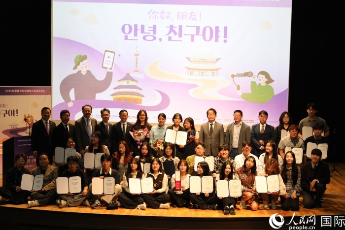 人民網(wǎng)首爾9月29日電 (記者莽九晨)29日,“你好,朋友!”中韓青年短視頻大賽頒獎(jiǎng)典禮在首爾舉行。中國駐韓國大使戴兵、韓國《中央日報(bào)》代表理事樸長羲出席并頒獎(jiǎng)、致辭。
