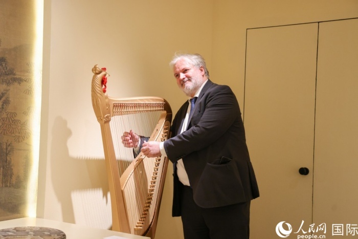 嘉賓體驗中國樂器。人民網(wǎng)記者 任皓宇攝