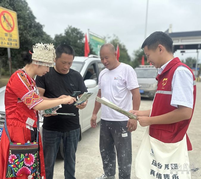 作為“瑤族發(fā)源地”的省界窗口,這里的服務滿是瑤鄉(xiāng)風情?!艾庎l(xiāng)雋妞”們身著紅馬甲,遇本地老鄉(xiāng)用方言嘮家常,提醒“前面路口減速”。碰上外地游客,就用普通話介紹美景美食。電子指引里還加了特產(chǎn)介紹,不少司乘被吸引,專程去逛古瑤村、買特產(chǎn)。志愿服務從“幫個忙”變成了推介瑤鄉(xiāng)文化的“活名片”。
