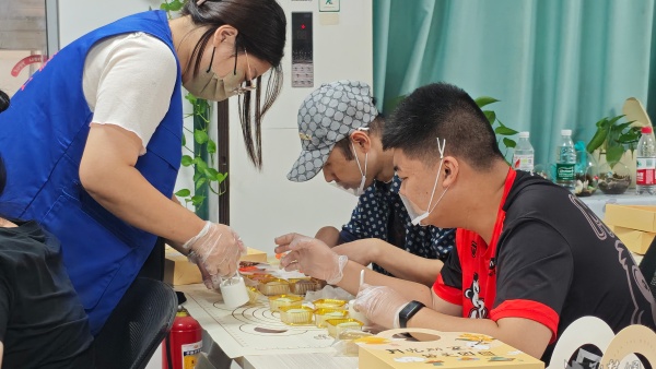 街道陽(yáng)光家園學(xué)員與愛(ài)心志愿者一起制作冰皮月餅。 通訊員供圖
