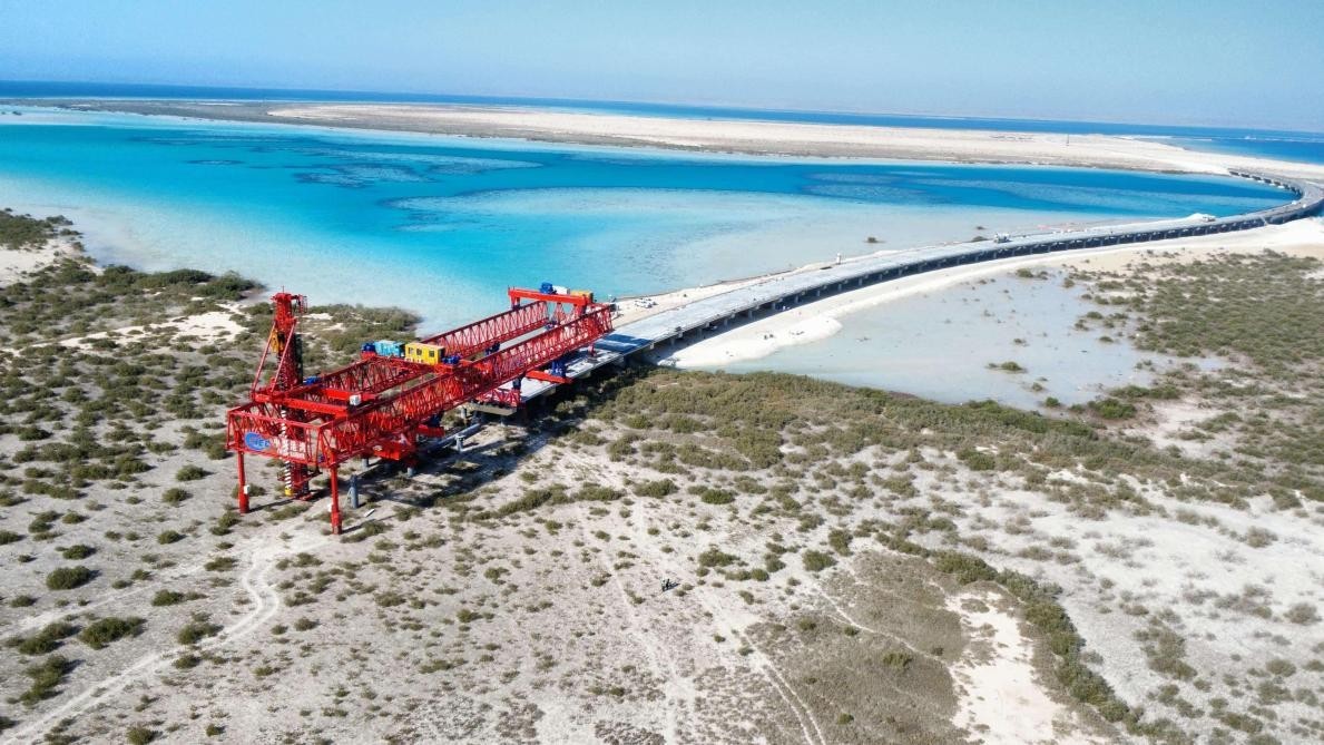 人民網(wǎng)迪拜10月2日電 (記者管克江)沙特紅海西海岸,郁郁蔥蔥的紅樹林上方,一座飛橋正在紅色鋼結(jié)構(gòu)樁梁一體機(jī)的牽引下逐步延伸?!斑@是中東地區(qū)首次投用樁梁一體機(jī)。使用這套自主研發(fā)的智能造橋裝備,我們能在架橋施工的同時(shí)保護(hù)當(dāng)?shù)厣鷳B(tài)。”沙特紅海拉赫克連接路與跨海橋工程項(xiàng)目經(jīng)理李偉偉介紹。