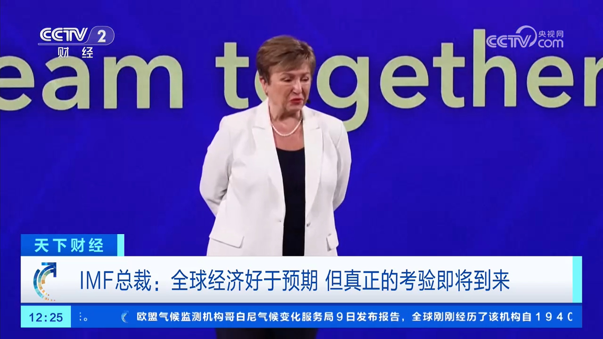 央視網(wǎng)消息:國(guó)際貨幣基金組織(IMF)總裁格奧爾基耶娃8日在美國(guó)發(fā)表講話時(shí)表示,全球經(jīng)濟(jì)好于預(yù)期,但沒達(dá)到“所需水平”,全球經(jīng)濟(jì)真正的考驗(yàn)可能即將到來(lái)。