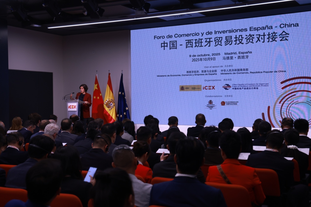 人民網(wǎng)馬德里10月9日電 (記者許海林、顏歡)當?shù)貢r間10月9日,為落實中西兩國領導人達成的重要共識,推動中西貿(mào)易向上平衡發(fā)展,商務部副部長兼國際貿(mào)易談判副代表凌激率大型中國企業(yè)團訪問西班牙,并同西方在馬德里舉行中國—西班牙貿(mào)易投資對接會。對接會由中國商務部與西班牙經(jīng)濟、貿(mào)易與企業(yè)部共同主辦,中國機電產(chǎn)品進出口商會和西班牙外貿(mào)投資促進局共同承辦,為雙方經(jīng)濟界增進交流、加強對接搭建了平臺。來自農(nóng)食產(chǎn)品、新能源汽車、動力電池、機械制造、跨境電商、金融及旅游等領域的300多位中西企業(yè)和商協(xié)會代表參加,現(xiàn)場氣氛熱烈。