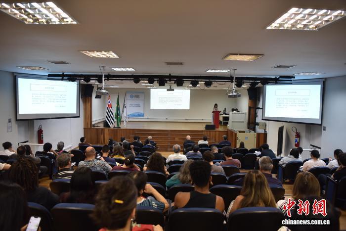 當(dāng)?shù)貢r(shí)間10月17日晚,作為“魯迅的文藝道路——不隔膜,相關(guān)心”展覽配套活動(dòng),北京魯迅博物館研究人員李紫璇在巴西圣保羅州立大學(xué)孔子學(xué)院開講魯迅作品。中新社記者 林春茵 攝