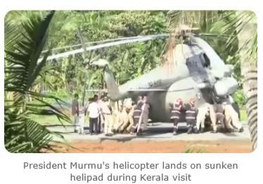 中新網(wǎng)10月22日電 據(jù)《印度時(shí)報(bào)》報(bào)道,印度總統(tǒng)穆爾穆于當(dāng)?shù)貢r(shí)間21日開啟對印度南部喀拉拉邦為期四天的正式訪問。22日,其乘坐的直升機(jī)在降落至當(dāng)?shù)匾惑w育場的直升機(jī)坪時(shí)發(fā)生意外,部分地面在機(jī)輪觸地后突然下陷。