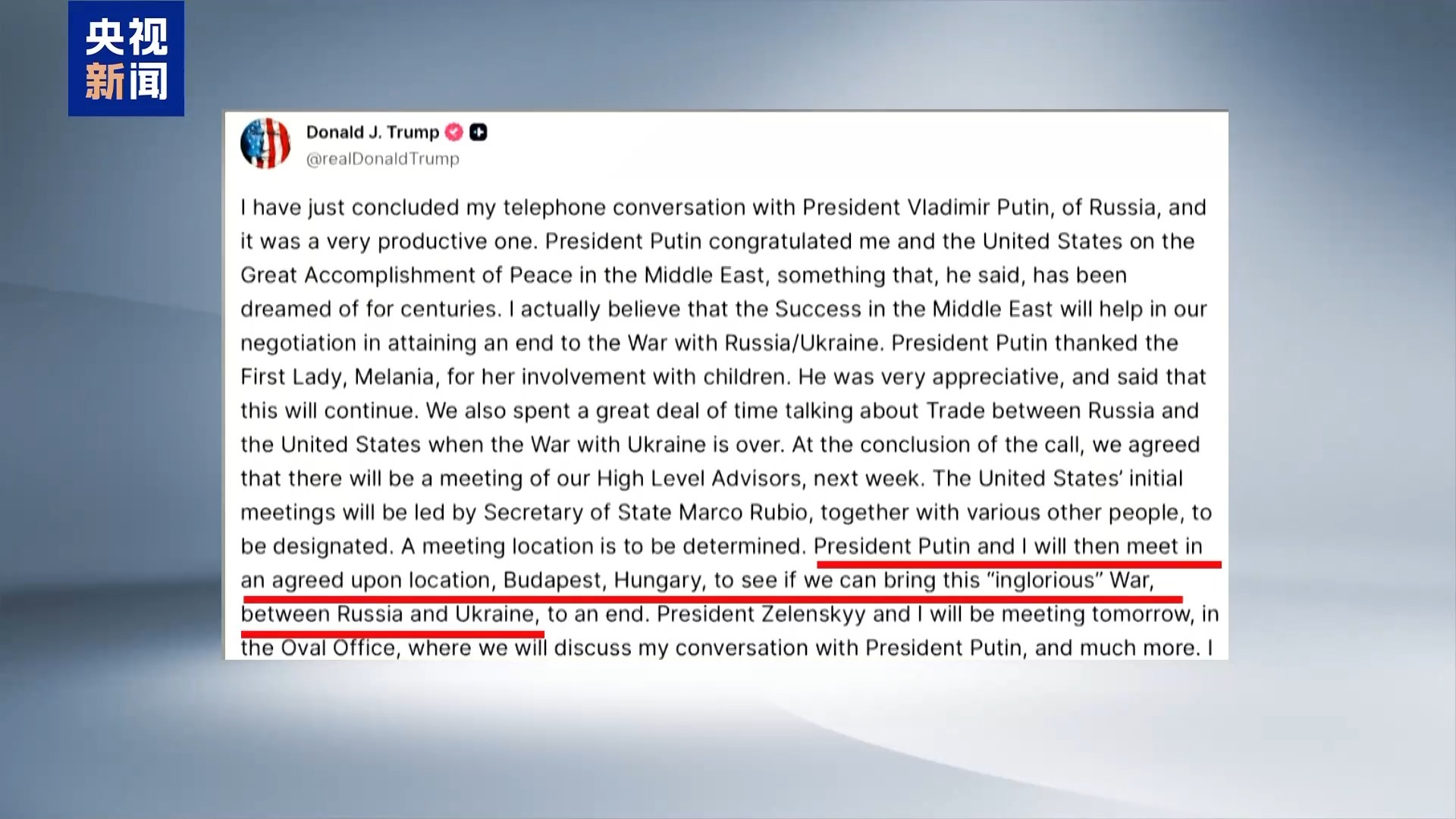 美國(guó)總統(tǒng)特朗普16日曾在社交媒體上發(fā)文說(shuō),他將與普京在布達(dá)佩斯舉行面對(duì)面會(huì)晤。但他沒(méi)有提及兩人會(huì)晤的具體日期。
