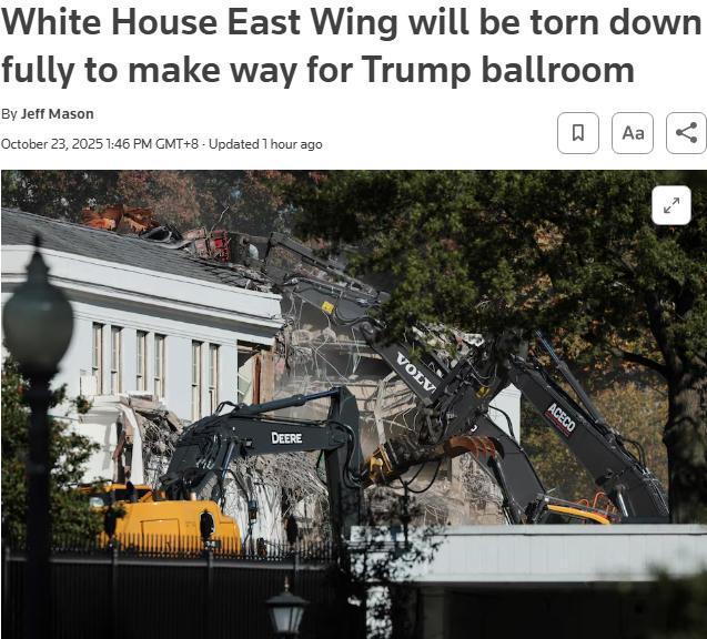白宮東翼被拆的舉動(dòng)持續(xù)引發(fā)爭議。