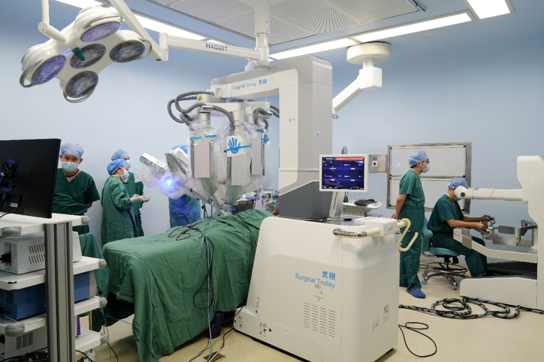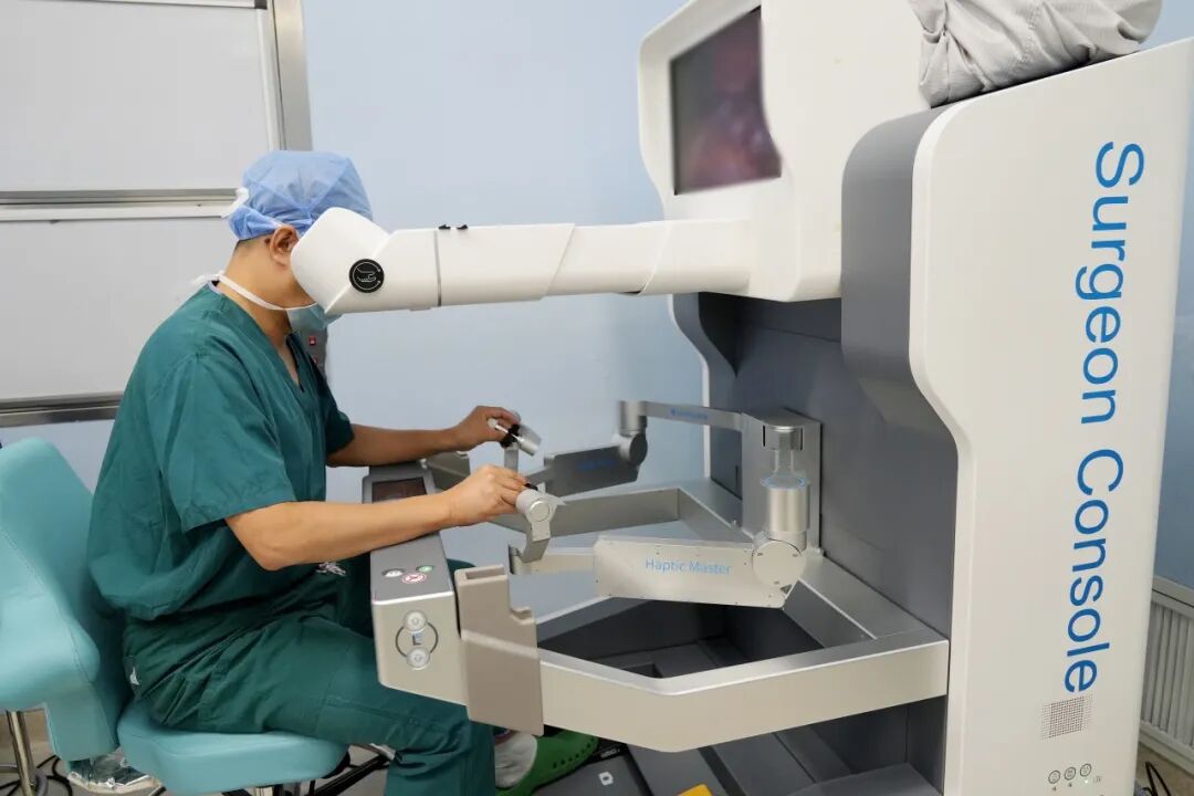 10月13日,在麻醉科、手術(shù)室等多學(xué)科團(tuán)隊(duì)的緊密配合下,小兒外科楊坤主任帶領(lǐng)手術(shù)團(tuán)隊(duì)正式開展手術(shù)。手術(shù)僅在患兒臍部作一個2厘米的微小切口,將機(jī)器人機(jī)械臂伸入腹腔。在楊坤主任的精準(zhǔn)操控下,靈活的機(jī)械臂在腹腔內(nèi)完成分離、切除狹窄部位、精準(zhǔn)吻合等一系列復(fù)雜操作。整個手術(shù)過程幾乎零出血,充分彰顯了機(jī)器人手術(shù)的微創(chuàng)優(yōu)勢。