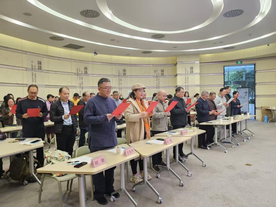 活動現(xiàn)場,來自新疆、河北等地的傳統(tǒng)文化愛好者與楚天數(shù)字書院研學(xué)班師生踴躍提問,與嘉賓展開熱烈互動?;顒游猜暎w參與者齊聲誦讀《論語》經(jīng)典章句,瑯瑯書聲回蕩廳內(nèi),讓千年智慧在當下煥發(fā)新生。此外,“論語生活美學(xué)展區(qū)”與“智慧之泉”互動墻等沉浸式體驗環(huán)節(jié),也讓讀者在場景中感受經(jīng)典與日常的融合之美。