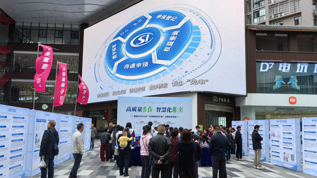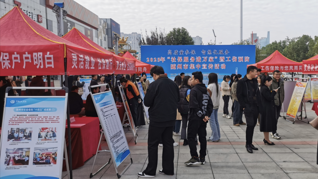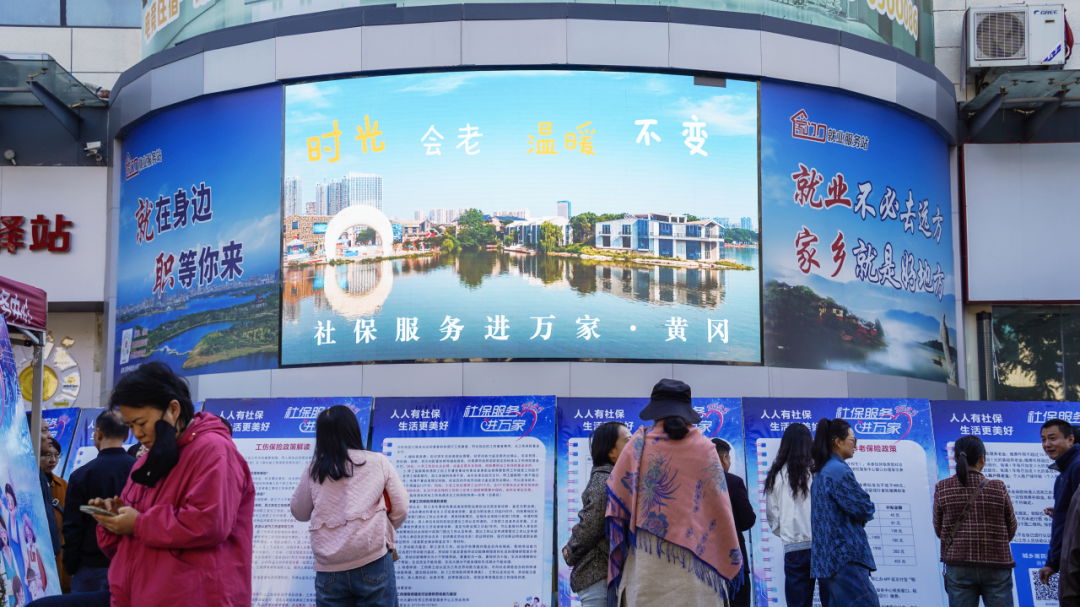 黃岡市“社保服務(wù)進(jìn)萬家”活動現(xiàn)場,群眾在社保政策宣傳展板前駐足觀看。