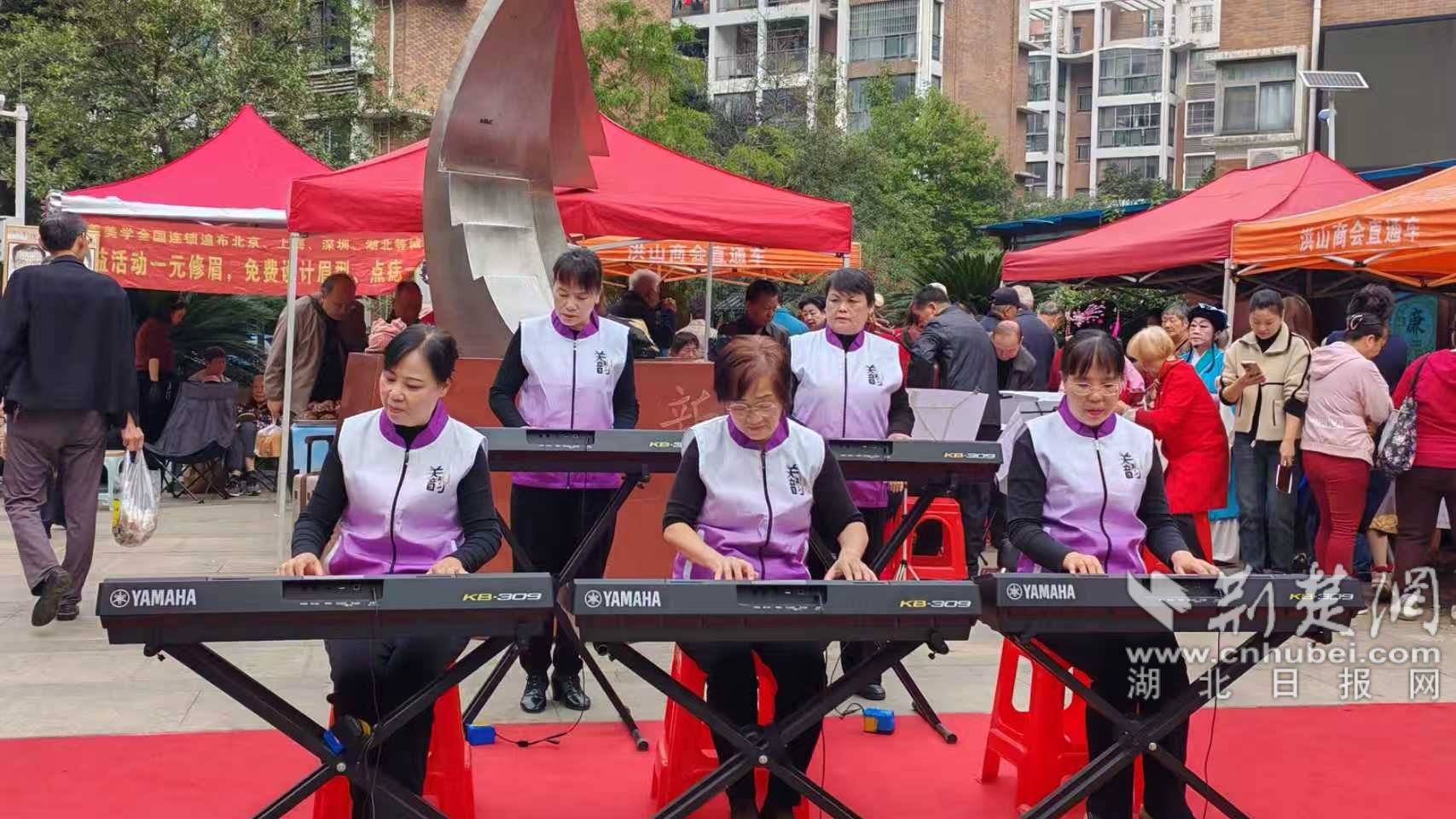 隨后,文藝匯演精彩啟幕。社區(qū)黨員、文藝愛好者與居家養(yǎng)老服務(wù)中心志愿者聯(lián)袂獻藝,帶來了一場精彩紛呈的視聽盛宴:昂揚的大合唱唱出了老人們對黨的感恩與對生活的熱愛;節(jié)奏明快的舞蹈展現(xiàn)出蓬勃向上的精神風貌;電子琴齊奏音色悠揚、婉轉(zhuǎn)悅耳;經(jīng)典黃梅戲選段韻味悠長,勾起老一輩的青春回憶;輕快靈動的口琴演奏贏得臺下陣陣喝彩。表演者全心投入,老人們看得津津有味,不時跟著哼唱、拍手叫好,歡聲笑語交織成最動人的節(jié)日樂章。