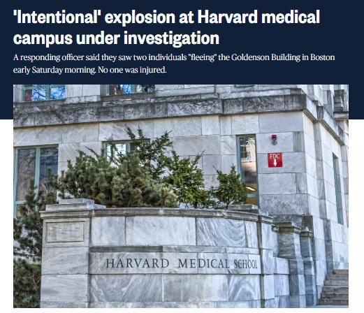 中新網(wǎng)11月2日電 據(jù)美國(guó)廣播公司(ABC)、美國(guó)全國(guó)廣播公司(NBC)報(bào)道,當(dāng)?shù)貢r(shí)間11月1日凌晨,美國(guó)哈佛醫(yī)學(xué)院一棟建筑發(fā)生爆炸。目前暫無人員傷亡報(bào)告。