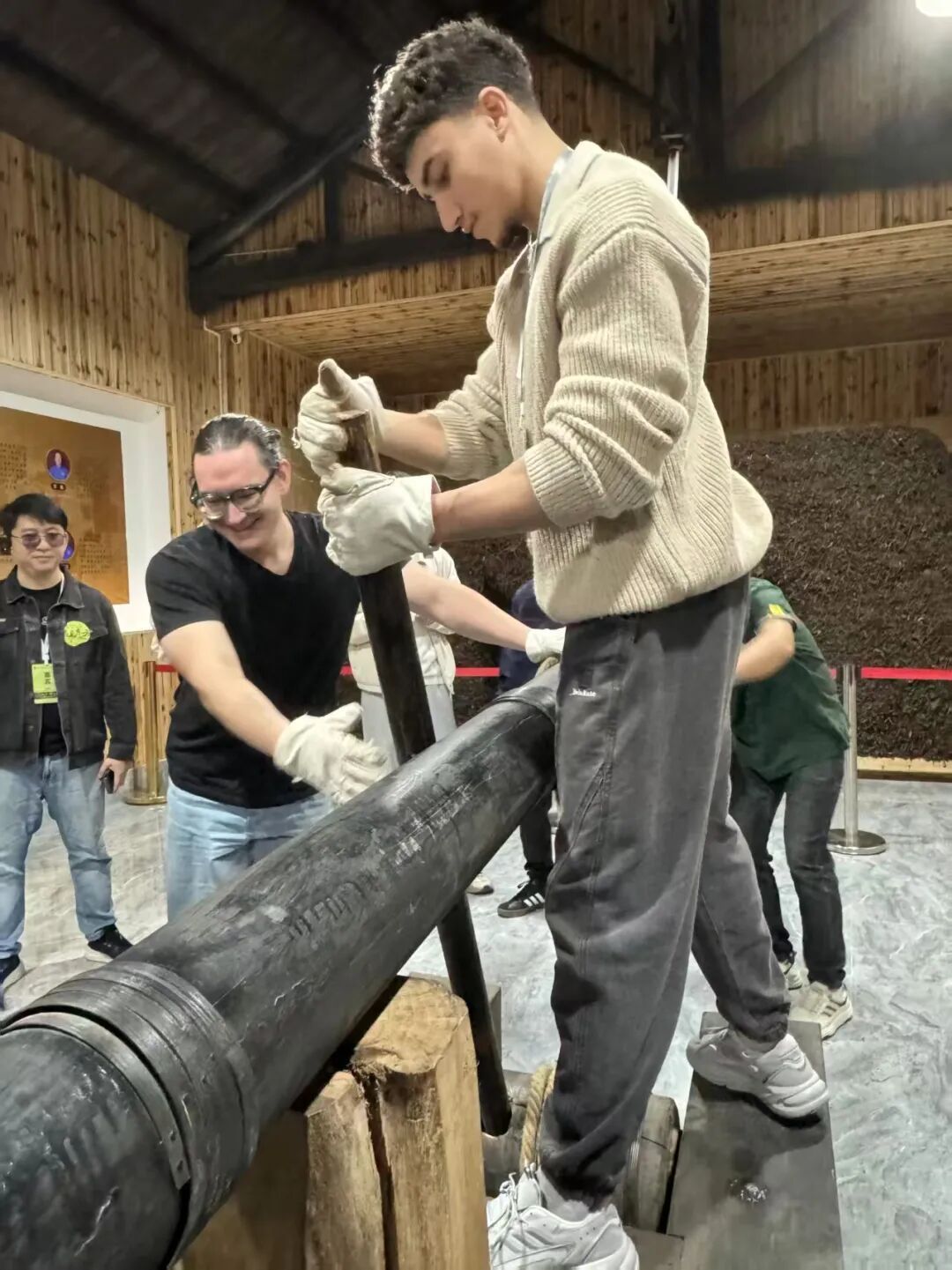 “我發(fā)現(xiàn)這是中俄友好的最好案例之一?!眮?lái)自俄羅斯的武漢大學(xué)法學(xué)院博士生拉福在參觀后感慨道。他之前曾在杭州的博物館零星了解過(guò)中俄茶葉貿(mào)易,但此次來(lái)到中國(guó)青磚茶發(fā)源地,親手制作,感受尤為深刻。“我們?cè)诓┪镳^看到了一些工具,也親手體驗(yàn)到茶是怎么做出來(lái)的,能感同身受體會(huì)當(dāng)年工人們的辛苦,真的需要費(fèi)很多功夫才能制出好茶。”