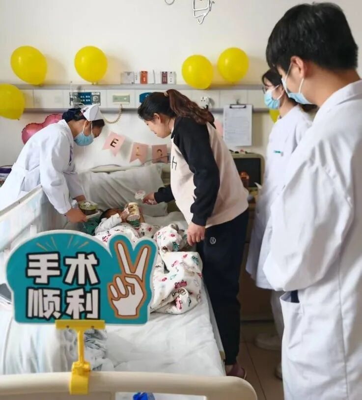 手術(shù)當(dāng)天,科室全體醫(yī)護(hù)人員在全力保障手術(shù)順利進(jìn)行的同時(shí),也在為生日會(huì)忙碌著。幾位已下夜班的護(hù)士主動(dòng)放棄休息,自發(fā)承擔(dān)起生日會(huì)的籌備工作:有的專程前往取預(yù)定好的小蛋糕,有的蹲在病房角落認(rèn)真吹著彩色氣球,還有人精心挑選卡通貼紙,將病房的窗戶、柜子裝點(diǎn)得童趣盎然。