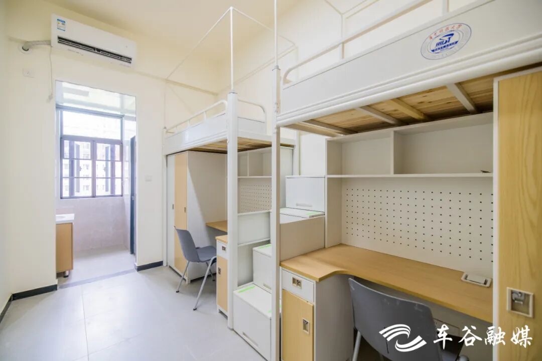 軍山校區(qū)建有7棟學(xué)生宿舍樓。北區(qū)的2棟主要面向本科生,以四人間為主。南區(qū)的5棟主要面向研究生,碩士生宿舍為兩人間,博士生宿舍為八人套房。宿舍樓一層為公共空間與服務(wù)樞紐,設(shè)有接待前臺,提供寄存、維修、反饋等服務(wù),設(shè)有多功能學(xué)習(xí)與活動空間、自習(xí)室、研討室、黨團(tuán)活動室、咨詢室,滿足多種需求。二層及以上是住宿區(qū),電梯直達(dá)、功能完善,公共服務(wù)區(qū)配備洗衣機(jī)、烘干機(jī)、洗鞋機(jī)、直飲機(jī)。宿舍采用智能門鎖,上床下桌,獨(dú)立衛(wèi)浴,多功能學(xué)習(xí)桌搭配人體工學(xué)座椅,為學(xué)生提供舒適的學(xué)習(xí)住宿環(huán)境。