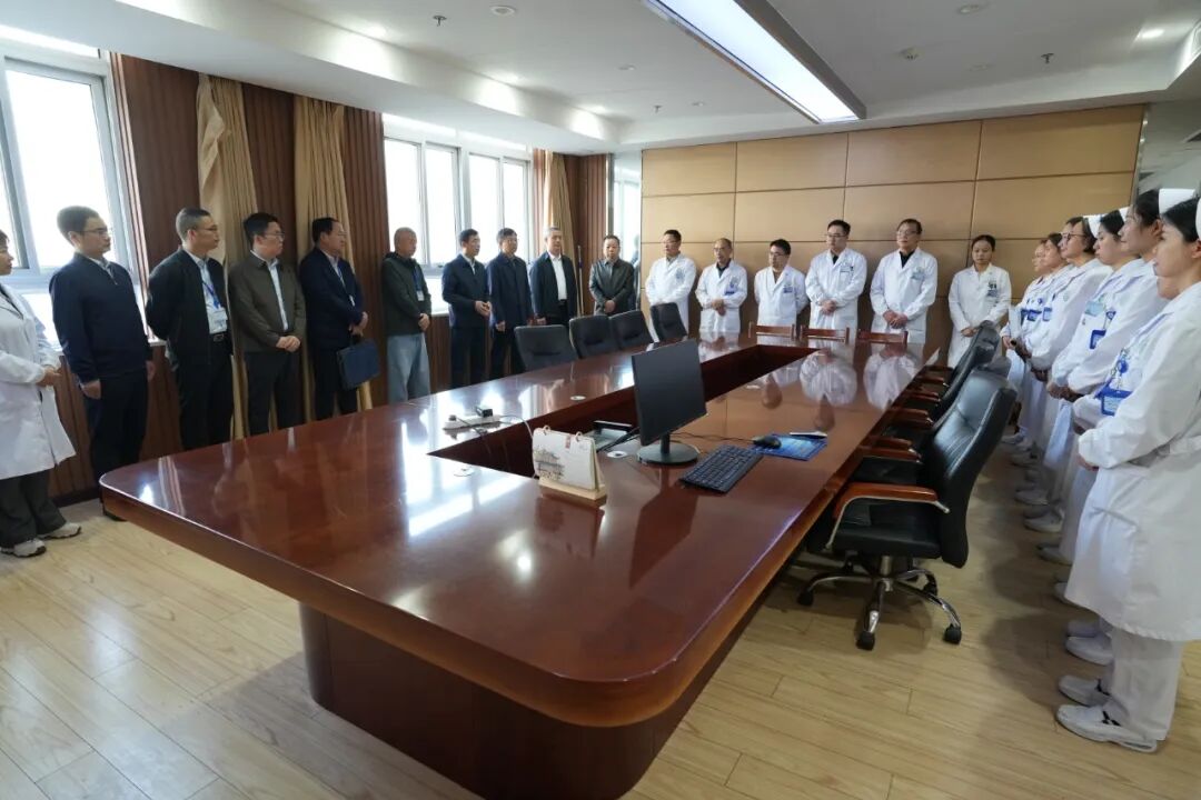 當(dāng)天清晨,醫(yī)院領(lǐng)導(dǎo)班子成員及相關(guān)職能科室負(fù)責(zé)人抵達(dá)新病區(qū),全程參與介入血管科的晨間交接班會議。領(lǐng)導(dǎo)們認(rèn)真傾聽夜班與白班醫(yī)護(hù)人員關(guān)于患者病情、治療方案及護(hù)理重點(diǎn)的詳細(xì)交接,并對科室未來發(fā)展提出了殷切期望和明確要求。