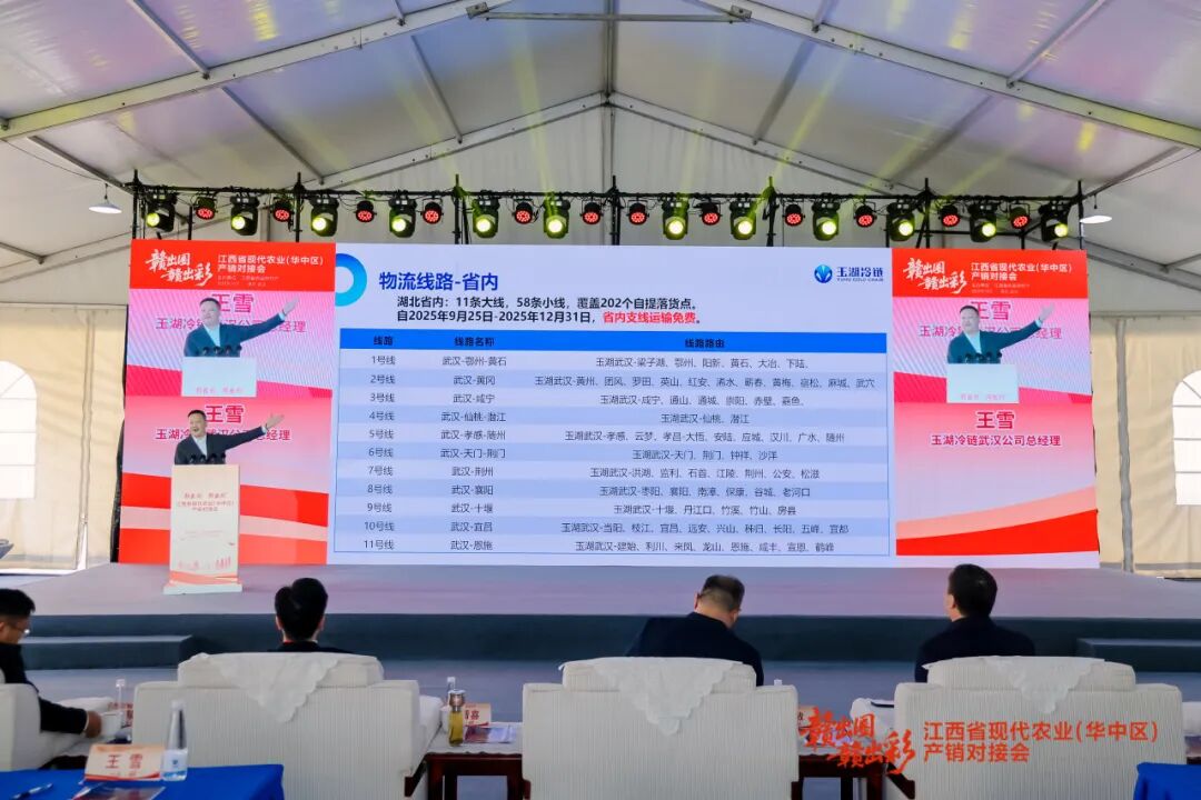 近日,江西省優(yōu)質(zhì)農(nóng)產(chǎn)品(華中區(qū))產(chǎn)銷(xiāo)對(duì)接會(huì)在位于黃陂區(qū)的玉湖冷鏈(武漢)交易中心舉辦。當(dāng)天,隨著玉湖冷鏈“華中區(qū)江西館”的揭牌,連接南昌主要凍品及農(nóng)產(chǎn)品批發(fā)市場(chǎng)與玉湖冷鏈(武漢)園區(qū)的“贛鄂冷鏈·玉湖專(zhuān)線(xiàn)”正式雙向開(kāi)通,這也標(biāo)志著黃陂區(qū)在華中冷鏈物流中的核心樞紐價(jià)值進(jìn)一步提升。