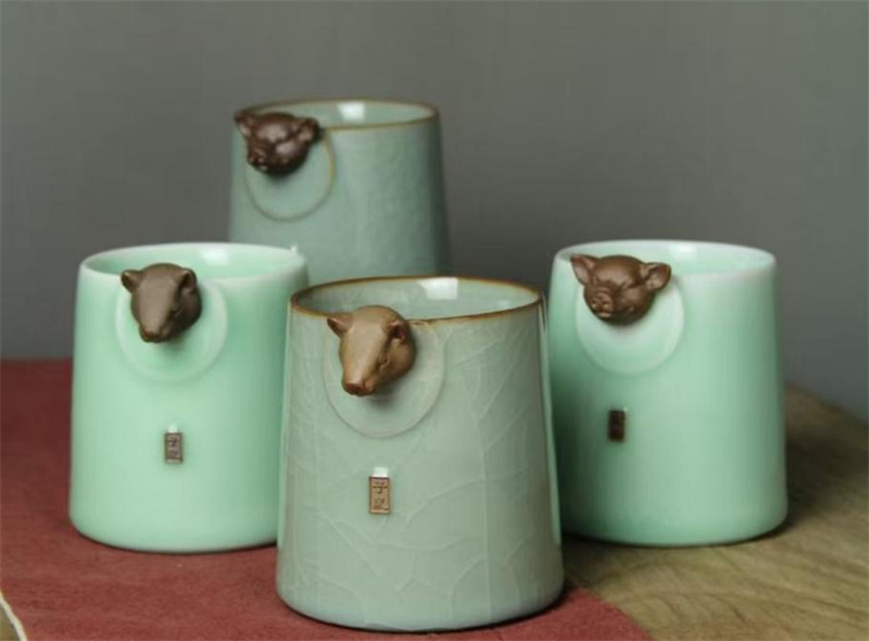 此次亮相的龍泉青瓷作品圍繞精致生活主題,展現(xiàn)了青瓷在日用瓷方面的創(chuàng)新。如浙江省工藝美術(shù)大師黃順民的《十二生肖水杯》巧妙融入生肖元素,杯身青釉溫潤,開片紋理古意盎然,杯口的生肖頭部雕刻生動細膩,實現(xiàn)傳統(tǒng)中國文化與龍泉青瓷工藝的完美融合;中國工藝美術(shù)大師、中國陶瓷藝術(shù)大師盧偉孫的《線性思緒手握杯》杯型直身微敞,杯身內(nèi)側(cè)與上唇露出白瓷胎,手工雕琢的線性紋理在涂抹青釉后,與光影交織出簡潔唯美的“哲思者”輪廓,1300℃還原焰燒制的青釉擅長表達青玉般潤澤的東方質(zhì)感,青白層次對比盡顯中國瓷器當代頂級美學。另一款《星空龜紋手握杯》則以遠古龜甲紋為符號,予以美好生活的祈福寓意,杯體配天然木紋底座,盡顯內(nèi)斂沉穩(wěn)的大家風范,將中華文化底蘊與當代設計審美巧妙融合。