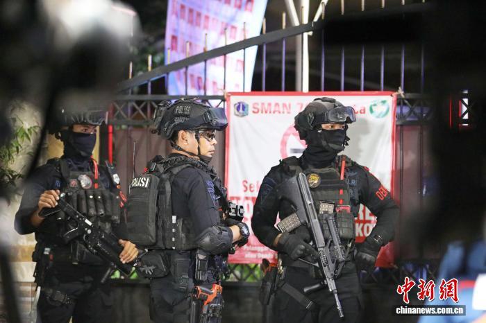 記者當(dāng)晚在現(xiàn)場(chǎng)了解到,法醫(yī)團(tuán)隊(duì)已進(jìn)入校園收集證據(jù)。防爆人員與消防隊(duì)員現(xiàn)場(chǎng)待命,隸屬于拆彈技術(shù)小組的車輛仍停靠在學(xué)校附近。其中,印尼國(guó)家反恐特警隊(duì)“88反恐分隊(duì)”人員也介入調(diào)查。