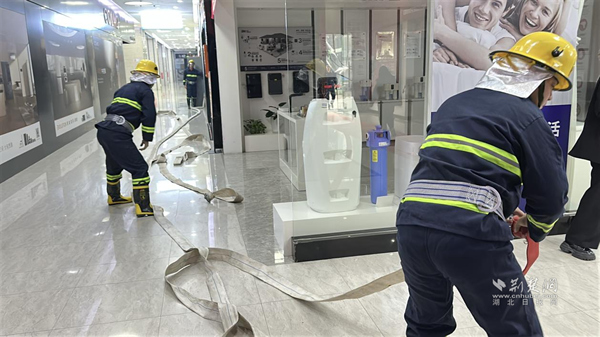 商場(chǎng)應(yīng)急隊(duì)員模擬演練。 通訊員供圖