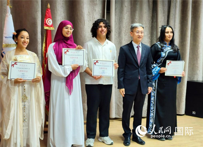 中國駐突尼斯大使萬黎與部分獲獎(jiǎng)?wù)吆嫌啊H嗣窬W(wǎng) 萊拉·阿提塔拉赫攝
