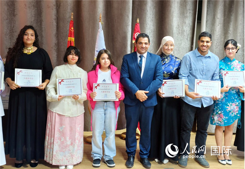 人民網(wǎng)迪拜11月14日電 (記者管克江)近日,中國駐突尼斯大使館第二屆“大使獎(jiǎng)學(xué)金”頒獎(jiǎng)儀式在迦太基大學(xué)孔子學(xué)院舉行。39位突尼斯高中生獲得各等級(jí)大使獎(jiǎng)學(xué)金,另有3位高中老師獲得優(yōu)秀教師獎(jiǎng)、1位老師獲得特殊貢獻(xiàn)獎(jiǎng)。突尼斯5省18所開設(shè)中文課的高中近百位師生出席。
