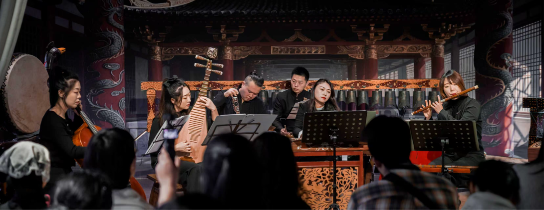? 荏苒哲思:陳銀、周思毅作曲,慧箏樂團(tuán)及陳銀、杜夢(mèng)、王遠(yuǎn)昭等演繹《小寒》《問道》《遇·子期》,以“三曲述三客”串聯(lián)荊楚人文意趣。