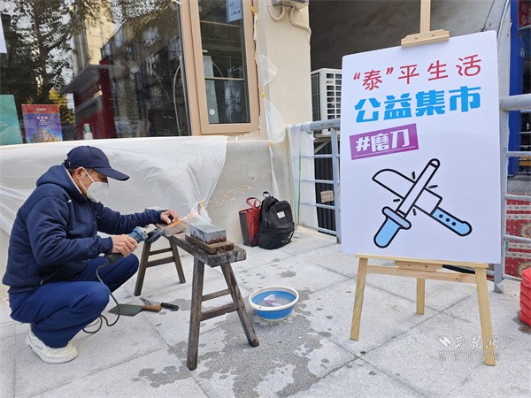 工會志愿者楊運來為居民打磨刀具。 通訊員供圖