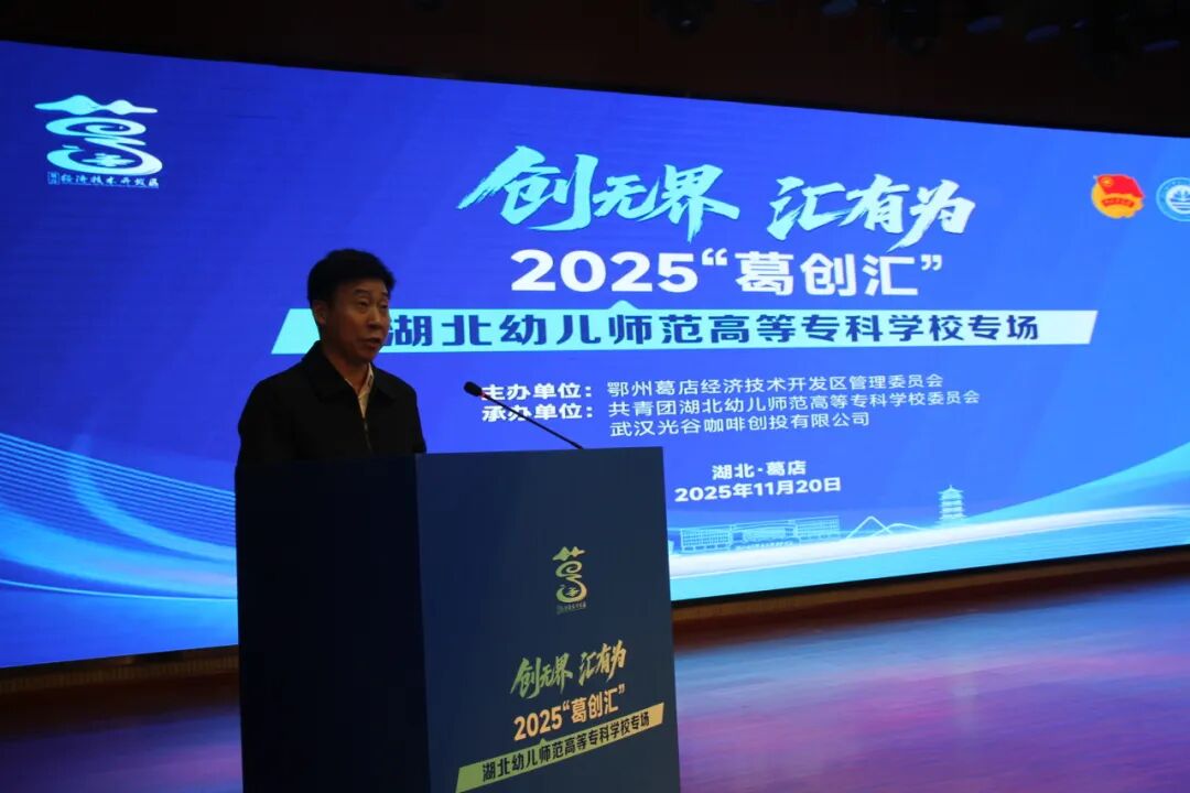 葛店國家經(jīng)開區(qū)管委會副主任柳金旗在致辭中高度評價(jià)了湖北幼專在幼教人才培養(yǎng)與創(chuàng)新創(chuàng)業(yè)教育方面的特色實(shí)踐。他表示,葛店開發(fā)區(qū)始終將高校作為區(qū)域創(chuàng)新的策源地與人才引擎,持續(xù)迭代"天天有咖啡、周周有路演、月月創(chuàng)投匯"的雙創(chuàng)服務(wù)生態(tài),為青年創(chuàng)業(yè)者提供全周期、專業(yè)化的成長支持。一直以來,葛店國家經(jīng)開區(qū)致力于為追夢者提供最優(yōu)渥土壤、最貼心服務(wù)、最廣闊舞臺,將全力發(fā)揮政策引導(dǎo)與平臺樞紐作用,激活區(qū)域創(chuàng)新活力,推動更多優(yōu)質(zhì)項(xiàng)目落地生根、開花結(jié)果,讓青年創(chuàng)新的"星星之火"在葛店這片產(chǎn)業(yè)熱土上形成"燎原之勢",為湖北建設(shè)全國構(gòu)建新發(fā)展格局先行區(qū)貢獻(xiàn)青春力量。