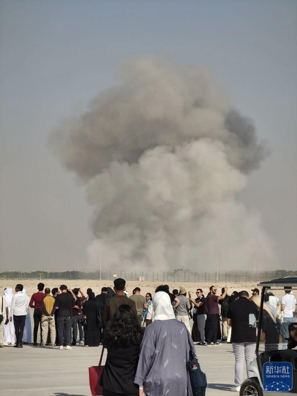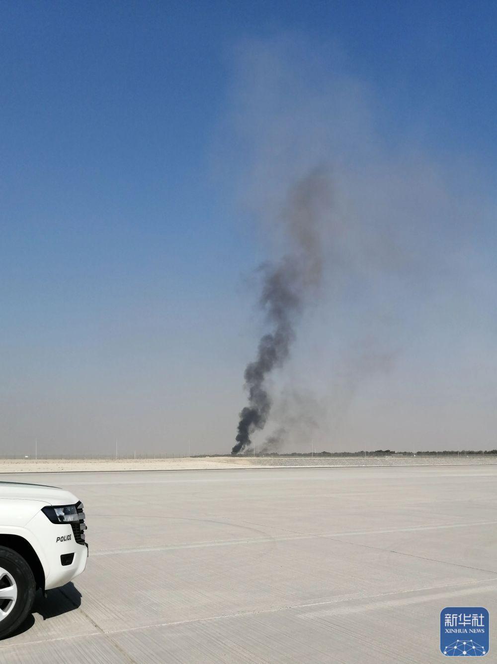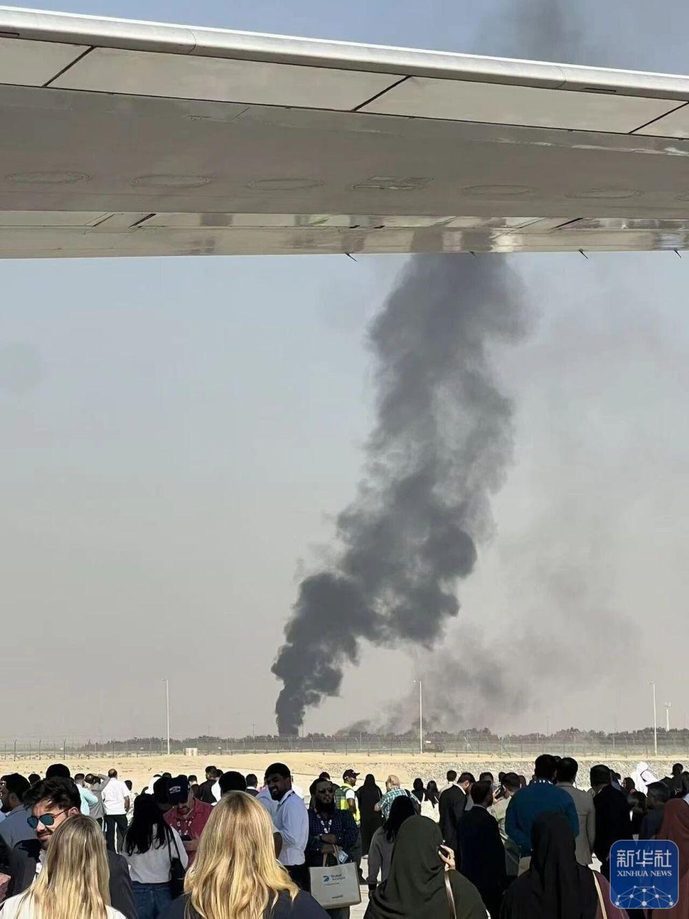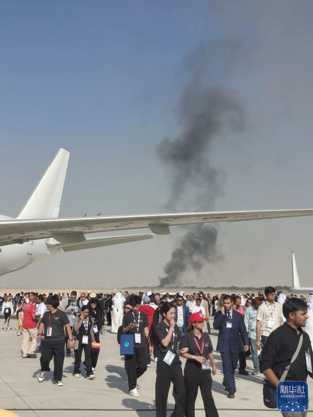 11月21日,在阿聯(lián)酋迪拜,飛機(jī)墜毀現(xiàn)場(chǎng)冒出滾滾濃煙。