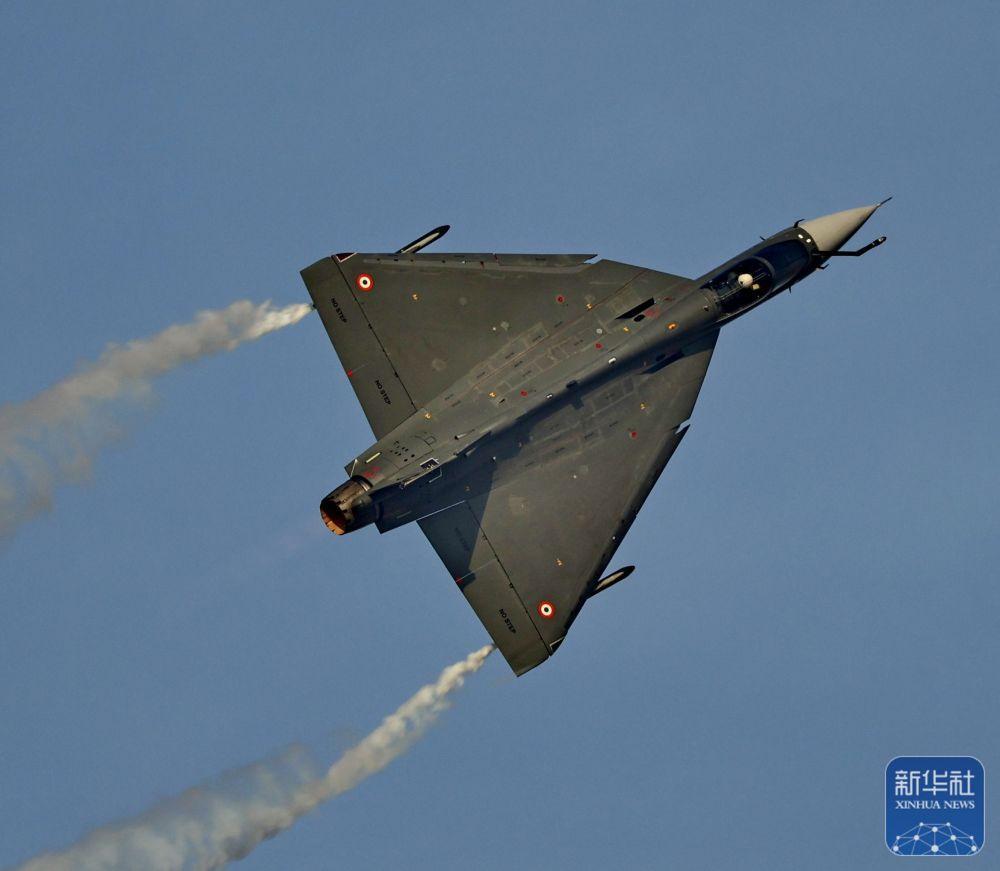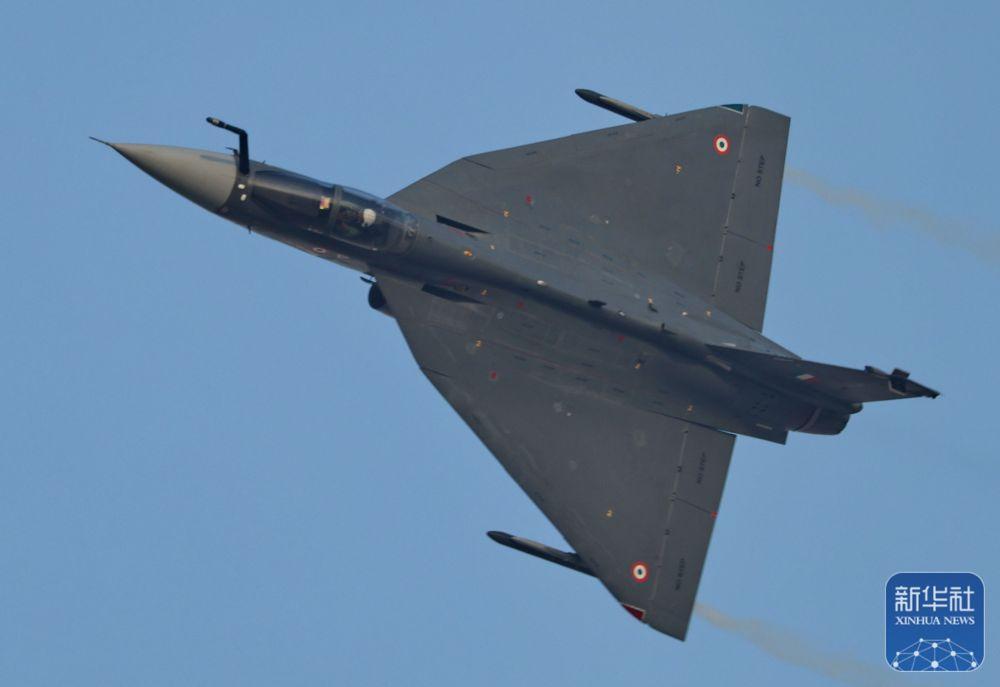 這是11月17日在阿聯(lián)酋迪拜航展拍攝的印度“光輝”戰(zhàn)斗機(jī)。