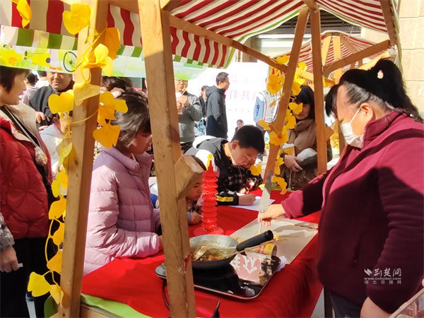 畫(huà)糖畫(huà)攤位前圍滿了好奇的小朋友,民俗老師手持糖勺,在案臺(tái)上揮灑自如,轉(zhuǎn)眼就勾勒出各類圖案,引得孩子們陣陣驚嘆。在糖葫蘆攤位,晶瑩剔透的糖殼包裹著酸甜的山楂,咬上一口,滿是幸福的味道。