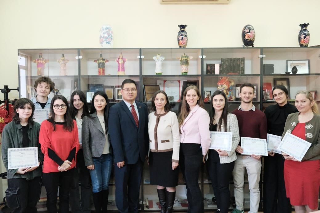 人民網(wǎng)華沙11月25日電 (記者禹麗敏)當(dāng)?shù)貢r(shí)間11月24日下午,首屆中羅文學(xué)作品翻譯大賽頒獎(jiǎng)儀式在布加勒斯特成功舉辦。該比賽由布加勒斯特大學(xué)孔子學(xué)院主辦、中國(guó)駐羅馬尼亞大使館支持。中國(guó)駐羅馬尼亞使館教育事務(wù)專(zhuān)員周?chē)?guó)寧,布加勒斯特大學(xué)孔子學(xué)院羅方院長(zhǎng)白羅米、中方院長(zhǎng)蘇宇以及布加勒斯特大學(xué)外國(guó)語(yǔ)言和文學(xué)學(xué)院教師包心茹、安德出席。獲獎(jiǎng)選手代表、孔院師生和布大中文系學(xué)生40余人參加活動(dòng)。蘇宇主持頒獎(jiǎng)儀式。