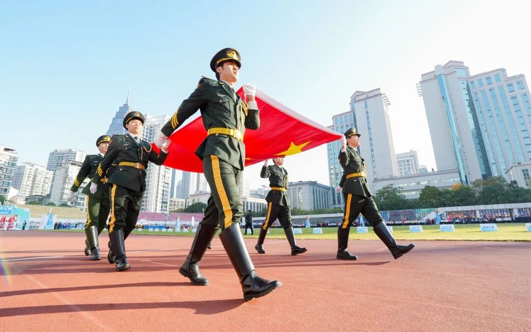 本屆江漢區(qū)職工運動會,73家單位組成59支隊伍,伴隨著激昂的運動員進行曲,五大特色方陣率先登場。紅色領(lǐng)航方陣高舉信仰之旗,彰顯江漢干部職工在黨的引領(lǐng)下凝心聚力、共謀發(fā)展;金融強區(qū)方陣踏出資本市場的節(jié)奏與力量,譜寫“千億基金,助力江漢”的現(xiàn)實圖景;數(shù)字融合方陣身著銀色未來裝,手持平板佩戴AR眼鏡,演繹“智轉(zhuǎn)數(shù)改”的科技動能;文旅消費活力方陣舞出都市商圈的熱鬧繁華、文旅街區(qū)的獨特韻味與街頭巷尾的裊裊煙火;現(xiàn)代商貿(mào)方陣全員藍色工裝,通過舞劇展現(xiàn)拼搏實干的江漢物流人建設(shè)商貿(mào)物流核心區(qū)的決心與奮斗力量!其余各代表隊也邁著矯健步伐整齊入場,或用精編節(jié)目博得喝彩,或以嘹亮口號響徹會場。