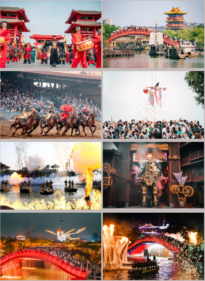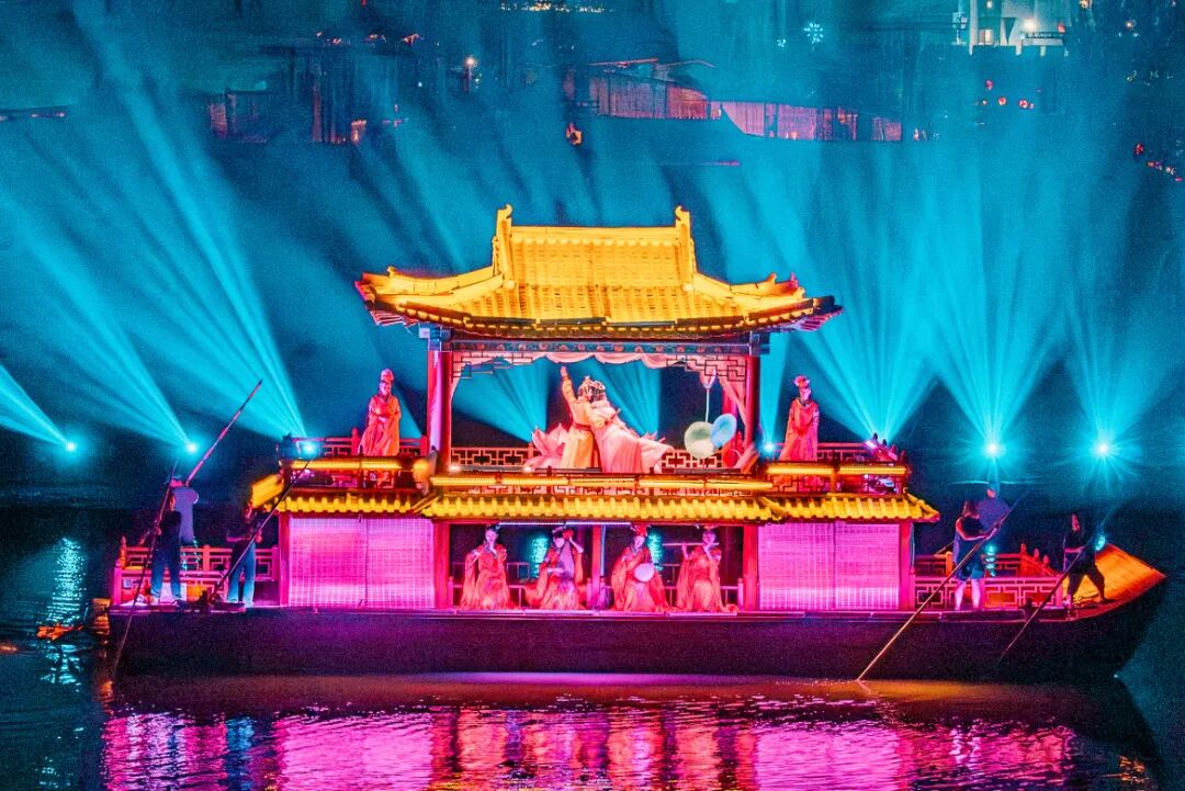 大型水上實景演出《大宋·東京夢華》由清明上河園斥巨資打造,充分利用皇家園林區(qū)景龍湖附近的亭臺樓閣、水榭橋廊構(gòu)成一個完整的古典實景劇場。