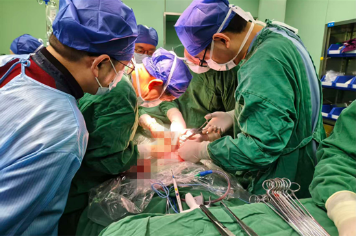 面對這一嚴峻挑戰(zhàn),在院領導的統(tǒng)籌指導下,團隊迅速啟動多學科協(xié)作,聯(lián)合麻醉科、重癥醫(yī)學科、影像科等相關科室進行深入術前討論,全面評估患者心肺功能等基礎狀況,最終制定出一套詳盡手術方案。