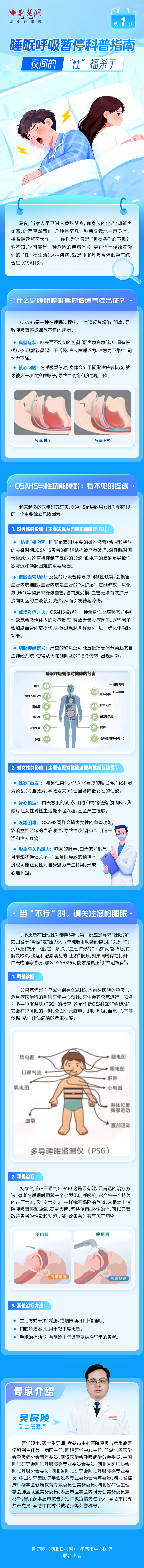 深夜,當(dāng)家人早已進入香甜夢鄉(xiāng),你身邊的TA卻鼾聲如雷,時而夏然而止,幾秒甚至幾十秒后又猛地一聲吸氣,接著繼續(xù)鼾聲大作……你以為這只是"睡得香"的表現(xiàn)?殊不知,這可能是一種危險的疾病信號,更在悄悄侵蝕著你們的“性”福生活!這種疾病,就是睡惺惺呼吸暫停低通氣綜合征(OSAHS)。