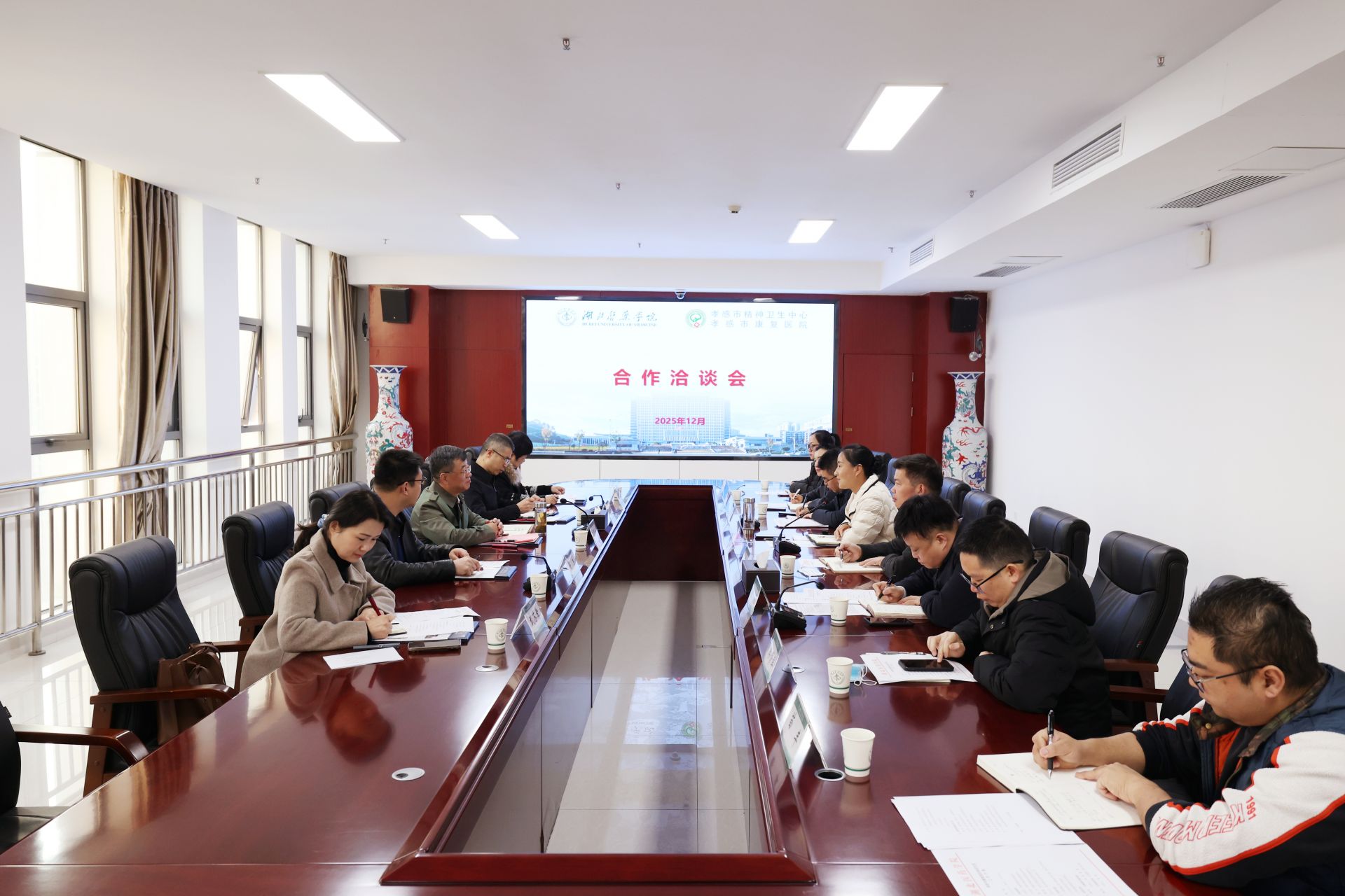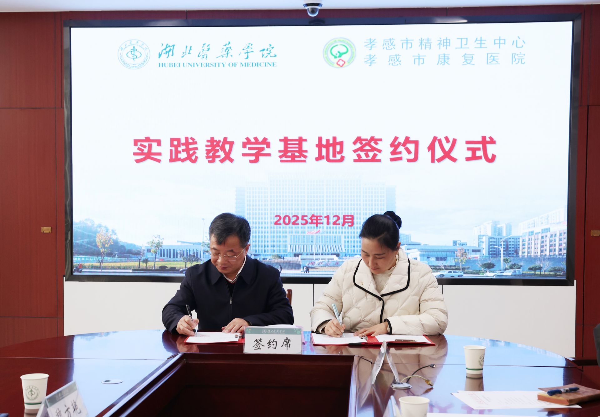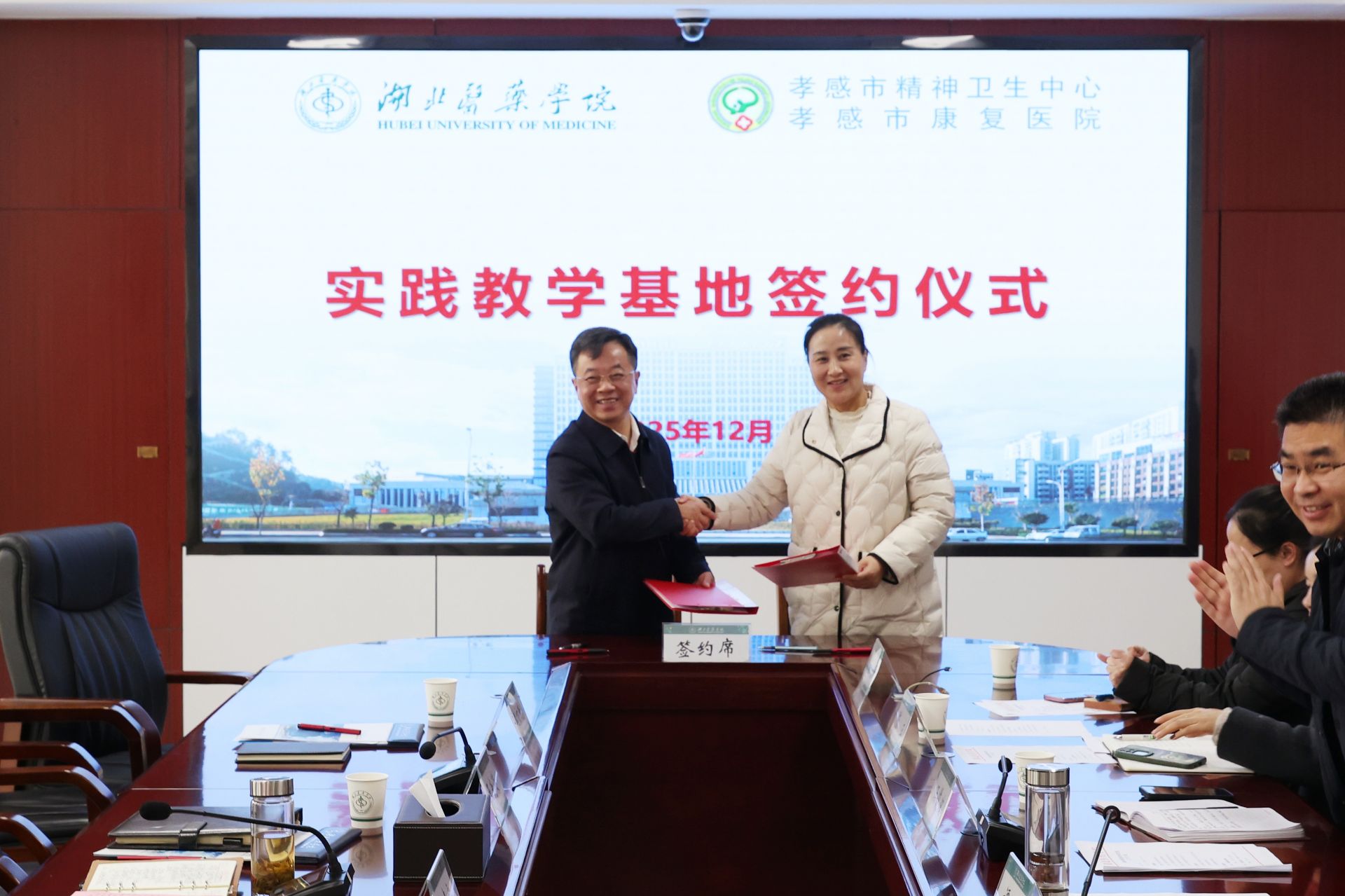 活動(dòng)中,雙方圍繞教學(xué)實(shí)習(xí)、科研合作、繼續(xù)教育等關(guān)鍵議題展開深入探討,達(dá)成廣泛共識(shí)。湖北醫(yī)藥學(xué)院副校長譚艷和孝感市康復(fù)醫(yī)院院長劉曉安分別代表雙方單位,正式簽訂合作協(xié)議。2026年10月,湖北醫(yī)藥學(xué)院將選派10名精神醫(yī)學(xué)專業(yè)學(xué)生與10名護(hù)理專業(yè)學(xué)生,赴我院開展臨床實(shí)習(xí)。雙方在以后的合作中將重點(diǎn)聚焦三大方向:一是優(yōu)化實(shí)習(xí)帶教體系,打造臨床醫(yī)學(xué)與護(hù)理專業(yè)優(yōu)質(zhì)實(shí)踐平臺(tái);二是建立常態(tài)化學(xué)術(shù)交流機(jī)制,共享資源提升教育教學(xué)質(zhì)量;三是依托學(xué)科優(yōu)勢(shì)聯(lián)合攻關(guān),圍繞精神疾病防治等領(lǐng)域推進(jìn)科研創(chuàng)新,產(chǎn)出更多臨床價(jià)值成果。