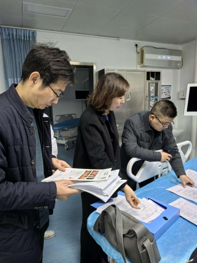 專家組由武漢大學(xué)人民醫(yī)院安萍教授、陳煒教授、駱孜護(hù)士長及武漢科技大學(xué)天佑醫(yī)院龍輝教授組成,采取“現(xiàn)場核查+資料審閱+人員訪談+集中匯報(bào)”的方式,對(duì)區(qū)域布局與流程、操作人員資質(zhì)、內(nèi)鏡消毒滅菌、患者安全管理、設(shè)備耗材保障等八大核心維度進(jìn)行全方位評(píng)估。檢查過程中,專家組深入消化內(nèi)鏡中心,實(shí)地查看診療區(qū)域布局、設(shè)備運(yùn)行狀況及消毒供應(yīng)流程,仔細(xì)翻閱病歷檔案、操作記錄和質(zhì)控臺(tái)賬,與醫(yī)護(hù)人員面對(duì)面交流診療規(guī)范落實(shí)及應(yīng)急處置流程等情況。