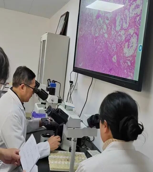 手術(shù)當日,當“雙側(cè)甲狀腺及中央?yún)^(qū)淋巴結(jié)”標本經(jīng)專用通道送達東城院區(qū)病理科后,一場與生命賽跑的“30分鐘戰(zhàn)役”正式打響。病理科團隊嚴格遵循規(guī)范流程,快速完成標本處理、切片制作、染色觀察等系列操作,最終由病理科主任醫(yī)師在顯微鏡下精準研判,按時出具診斷報告,為臨床手術(shù)方案的實時調(diào)整提供了核心依據(jù)。