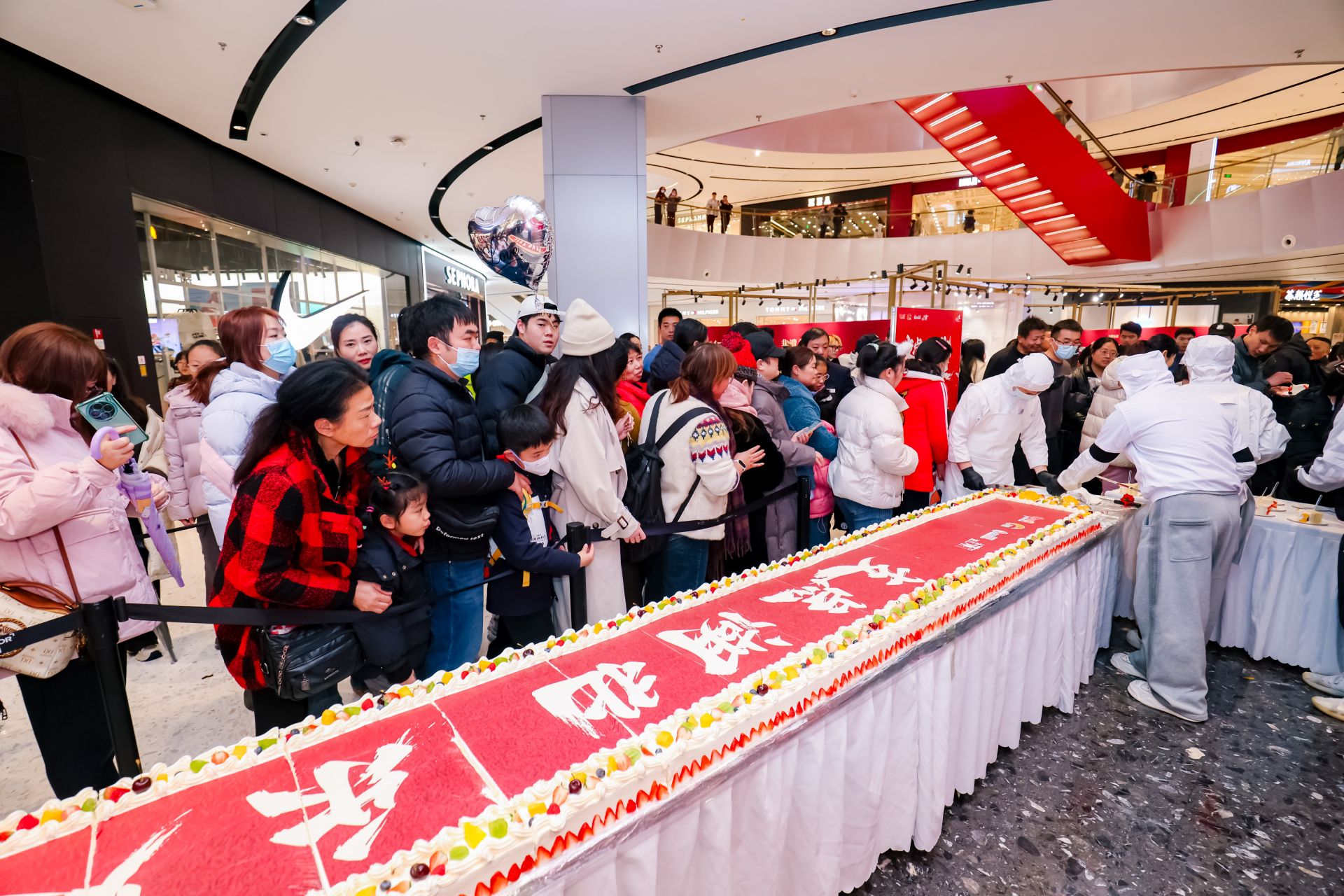 文化賦能讓消費(fèi)更具溫度。戶外500平方米祥云燈籠矩陣融入楚文化鳳鳥紋、瑞獸紋元素,搭配巨型燈籠裝置成為跨年標(biāo)志性打卡地;室內(nèi)“朱炳仁?銅”新春馬年武漢首展展出《燃燒的向日葵》等精品,開放銅板拓印體驗(yàn)??缒暌梗?0米超長冷煙火、外立面激光倒計(jì)時(shí)與楚地特色表演同步上演,千份盒馬餃子免費(fèi)派送,“新年照相館”定格溫馨年味,讓市民在濃厚氛圍中迎接2026年。