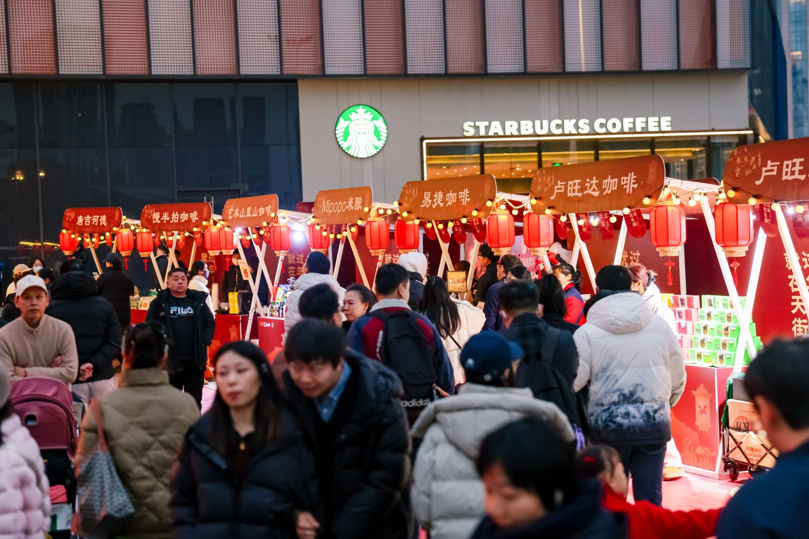 國際廟會(huì)作為核心亮點(diǎn),匯聚數(shù)十家特色商戶,構(gòu)建微縮“全球風(fēng)味檔案館”。8米巨型跨年蛋糕帶來儀式感打卡體驗(yàn),意大利歐蒂姆起泡酒、盧旺達(dá)咖啡等國際飲品與榮獲IIAC國際金獎(jiǎng)的易捷咖啡拼配豆同臺(tái)亮相,精釀啤酒、創(chuàng)意雞尾酒與本土精品咖啡形成復(fù)合消費(fèi)場(chǎng)景。米婆婆將中式酒釀與西式咖啡創(chuàng)意融合,美團(tuán)歪馬送酒帶來本土化改良的熱紅酒文化,展現(xiàn)全球潮流與本土創(chuàng)新的深度碰撞。